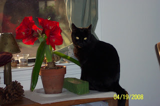 In January, I put the amaryllis that I had forced for Christmas out on the back deck, intending to dry it out and save it for next year. Unbeknownst to me, Cindy kept watering it and now it is blooming more spectacularly than it did in December. Needless to say, it is back in the house.