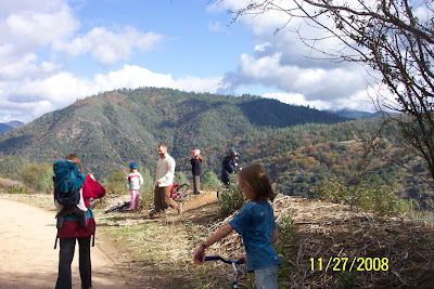 On Thanksgiving morning, I joined the ten Tippetts for a bike ride on the old railroad grade in Tuolumne City. It was a spectacular day with billowing clouds topping off a blue sky above the river canyon. We weren’t the only ones who thought a jaunt on this trail would be fun; there wasn’t a vacant place in the parking area at the trail head.