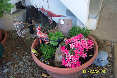 Many flowers in my garden were acquired from others—coming as gifts or cuttings or from thinning projects. The sweet little yellow irises came from Jenny who got them from her grandma’s yard. She also gave me some hens-n-chicks this year. I have another species of hens-n-chicks that August pulled from his mother’s garden for me when he was 5. I have Lambs Ear from Pam and Allium from Christine and Love-in-a Mist from Trish. Jennie Lou gave me three of my four crepe myrtles which have shot up this year and are blooming already. When I took a gardening class, we prepared several cuttings for cultivation which have survived in my yard: artemisa, a mosquito repelling geranium, and two other plants I can’t remember the name of but which are doing wonderfully well. Since we moved into a house formerly owned and gardened by our friend Doralyn, I also have plants that she cultivated: irises, mums, star jasmine, and roses, along with the trees, i.e. fruitless mulberries and ornamental plum.