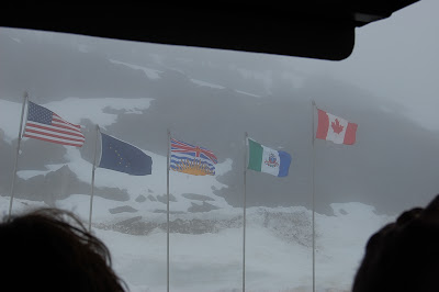 Our most northerly stop was Skagway where we rode the White Pass narrow gauge railroad to the top of a 2200 foot peak that the gold miners had to cross (before there was a train) to get to Canada and the Klondike gold fields. We rode into the mist at the summit and saw the border between the US and Canada marked by flags. The views were spectacular. At one point, we could see down through the pass to where our ship was docked. I found immense satisfaction in the deeply fragrant forest of spruce, cottonwood, and birch. A storm blew in as we descended and we had to walk in fierce winds to make it back to the ship, giving us a tiny taste of the weather Alaskans deal with all winter.