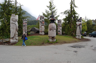 After two days at sea (more on this later), we reached our first stop: Ketchikan–the southern most city in Alaska and the salmon capital of the world. The weather was awesome as it was for most of the trip, cool and sunny. We visited a museum, walked about town, including a boardwalk called Creek Street, and rode a funicular to the top of the mountain-side against which the town is built. At the top, we got a chance to see a “grove” of old totem poles, incredible historical relics seen all over this part of Alaska.