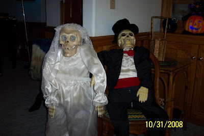 Cindy got home from work shortly after the last child was picked up and we started getting ready for our evening event, the annual Fall-o-Weenie Party hosted by our friends Morgan and Lynn. It’s always fun to see the crazy goulish decorations Morgan has on display, and of course it’s a treat to visit with friends whose company we don’t have enough opportunites to enjoy. I fell into bed after this long luscious Friday and slept wonderfully against the backdrop of wind and rain.
