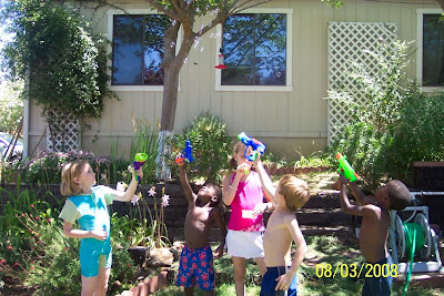 Posted on August 4, 2008The family handyman arrived yesterday, and 6 Tippetts and Huckle came along with him to visit Dearma. While Michael dealt with plumbing and electrical problems, I played with the kids . . . err well, I kept up with the kids. Here are some pictures that show the action.
